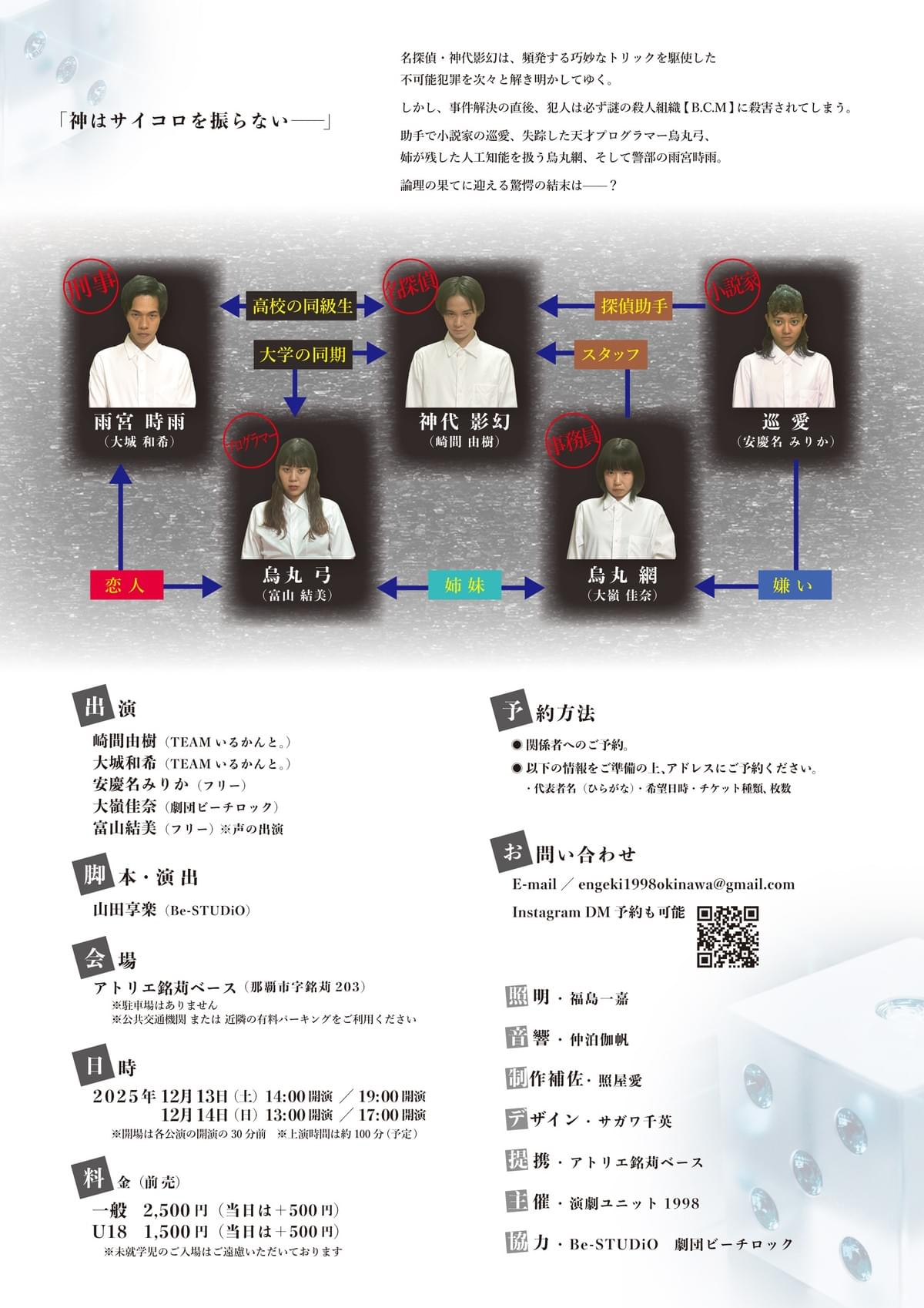 ・新井章仁 脚本・映像制作「城の祭り」・大嶺佳奈 出演「神はサイコロを振り続けても -GOD’S ALGORITHM-」演劇ユニット1998