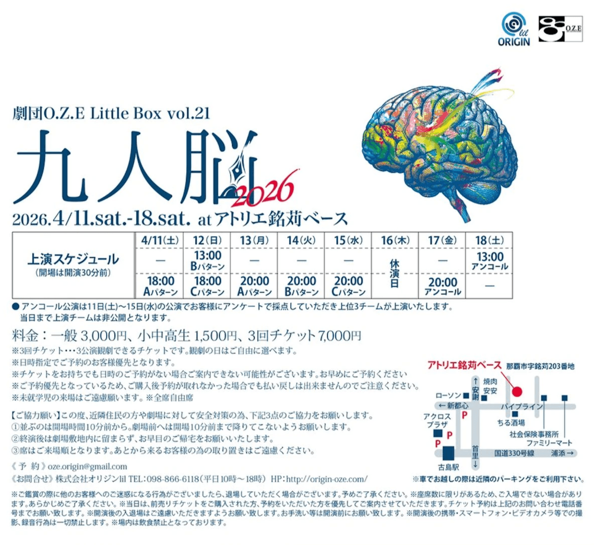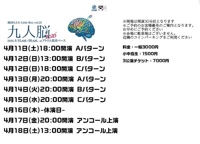 ・ジョーイ大鵞、大嶺佳奈、仲泊伽帆 出演4/11~18「九人脳」2026